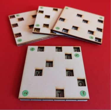 Die Box enthält Fleißnersche Schablonen und verschiedene damit verschlüsselte Texte. Mit dieser einfachen Methode können die Grundprinzipien der Verschlüsselung veranschaulicht werden. Zusätzlich können eigene Texte ver- und entschlüsselt werden.